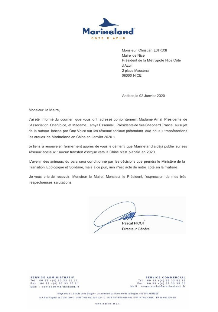 Après 1 mois de campagne et 3 lignes de démenti, Marineland annonce qu’aucun transfert des orques vers la Chine n’est prévu en 2020. Nous y veillerons! Merci à tous! Merci @cestrosi pour Inouk, Keijo, Moana et Wikie. Merci @lauratenoudji et @hugoclement #UnSanctuairePasLaChine https://t.co/zW8WHFS4Dl